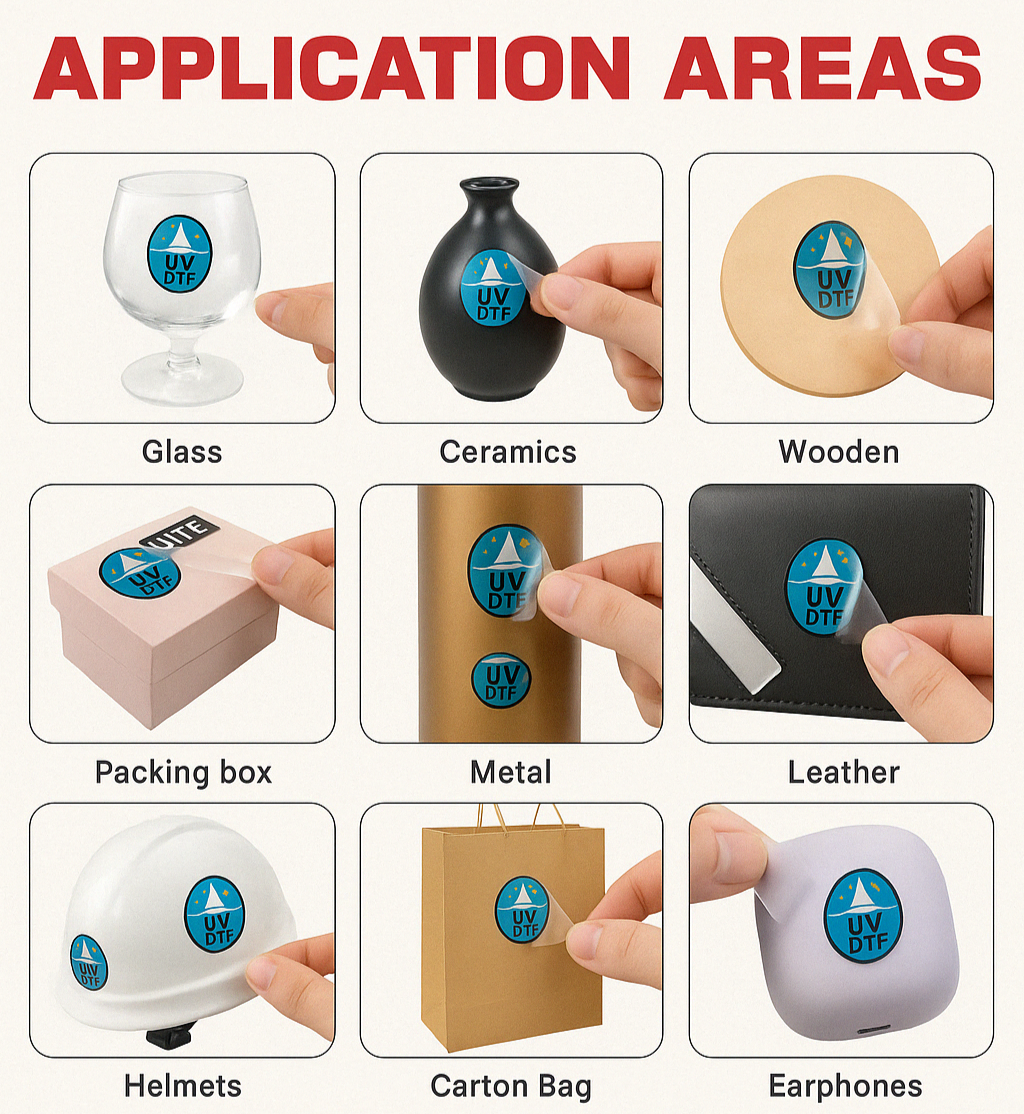 • Custom UV DTF transfer sheets using your design.